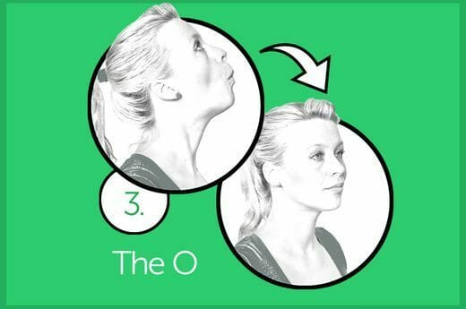 Sitting with your back straight and shoulders down, tilt your head back so that you are looking at the ceiling. Close your lips so they are together but relaxed. Keeping your lips closed, open your mouth so it forms an “O” shape. Hold this position for 20 seconds. You should feel a contraction on both sides of your neck directly under your jaw line. Relax your mouth and lower your chin to return to the starting point. That’s one rep. Complete two sets of 10 reps each.