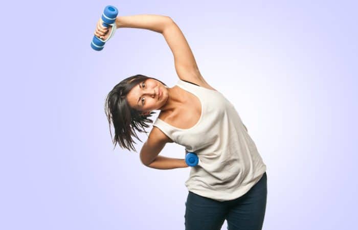 Dumbbell side bend is just an advanced version of your side bend stretching exercise. It is a killer move that can annihilate your side fat with all the grace of a ballerina.