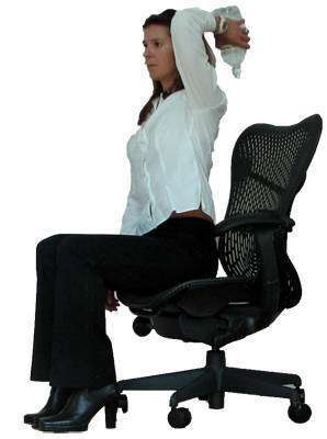 - Keep the upper body straight and bend your knees. The knees should be in line with the desk or chair.
