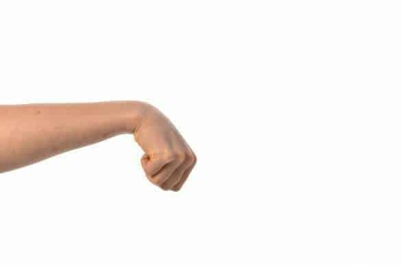 - Raise your right hand, straightening it with your fingers pointing forward.