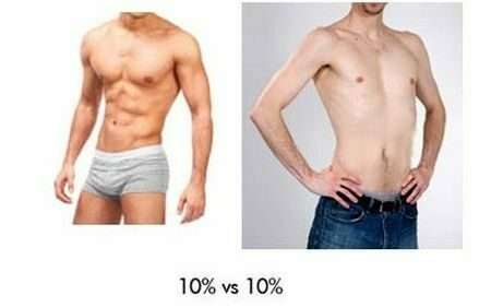 Both guys are around 10% body fat, but the one on the left has a good 20 to 25 pounds of muscle on his skinny fat neighbor.